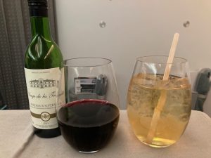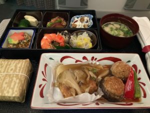 和食を選択。そして、イチローズモルトのソーダ割り。こうして、日本の良いウィスキーが飲めるのはJALの良いところだ。