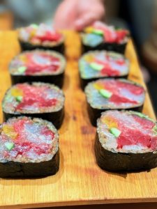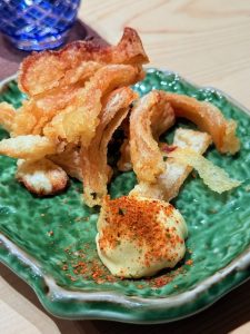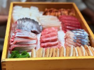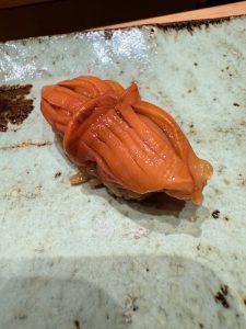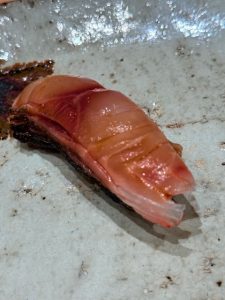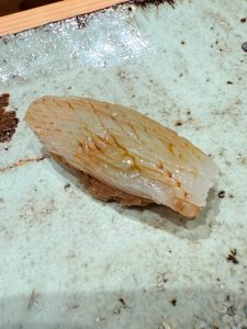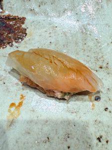 ここまで来るともう満腹で食べられない。太巻きは綺麗で美味しそうであったが、泣く泣く断念。そして最後の写真は、サービスでくれたエイヒレ。