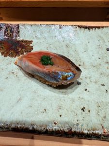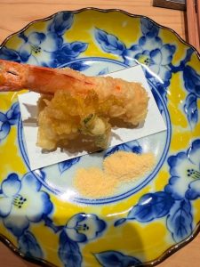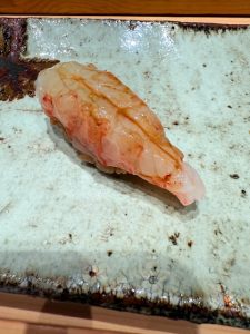 鮨の写真は枚数が多くなるので大変だ。ともあれ満足して食べ進む。海老の天ぷらが挟まれているのが好ましい。