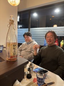 4人で何種類か飲み、その殆どは普通に美味しい日本酒だったけど、最後の〆は古代米を使った伊根満開という日本酒の熱燗。「これはかなり癖が強いですよ(注意した方がよいですよ)」と言われて、承知して飲んだが、確かにその通り、本当に癖が強くて、これを飲んだらもう終わりという感じになる。シェリーとか、グラッパとかが好きな人には良いかもしれない。自分はもう飲まないと思うが、良い経験になった。