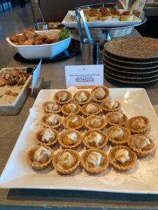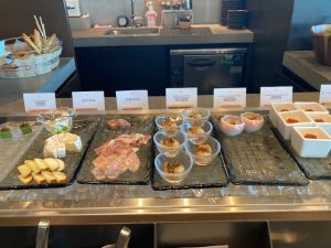 何時も通り日本酒を買って、キャセイ空港のラウンジに。毎回思うが、このキャセイラウンジは、雰囲気、接客も含めて非常に素晴らしい。今日は食事はしなかったのだが、眺めていると、ゴルゴンゾーラチーズをかけた一口タルトとか、チーズ・ハム各種とか、大変気の利いたものが並べてある。YCATからのリムジンが30分待ちだったので、隣接のスタバでソーセージパイを食べてしまったので食べられなかったが、次回は何か食べよう。
