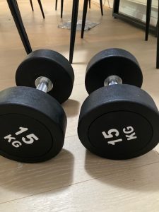 15Kgx2個のダンベルを買った。自室にあるダンベルは9.5Kgなので、アームカールやフライをやる時は良いのだが、ダンベルプレスやショルダープレスをやる時は軽すぎる。という事で新規で購入。合計30Kgだと価格は約300元と、それなりに高い。こんな感じで家に届いたが、見た目は小さいがやたらと重い荷物で、配達人さんは大変だったであろう。配達人さん有難うと感謝しながら使用する。
