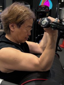 こんな感じで筋肉は着いてはいるが、「顔が変わってきた(特に頬)」、「腹が出てきたのでは」という疑問が生じ、翌朝体重計に乗ってびっくりしたという次第。やはりまめに体重計に乗らないといけないな。自分は、米、麺を食べだすとすぐに太る。運動してても太るので、甘く見てはいけないな。