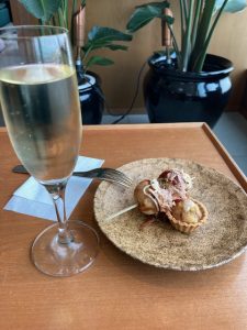 何時もながら、ここは洒落ている。ゴルゴンゾーラがかかった身にアップルパイが旨い。そして、たこ焼き串がおいてあるのが珍しい。