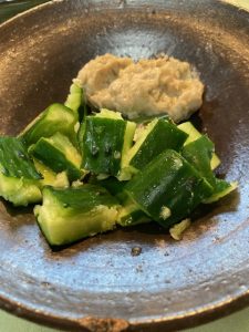 これは次の日の食卓。食事は毎回4~5品。30分以内に作って、洗い物も済ませるのを目標にしているが、だいたい40~60分かかってしまう。この日は30分以内に完成出来て満足だ。野菜を意識した献立となった。